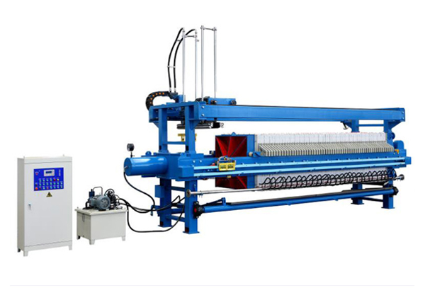 自動水沖洗壓濾機能夠實現濾板壓緊、過濾、壓榨、反吹、洗滌、濾板松開、卸料、水洗等各道工序的自動化控制。該機型配置有隔膜板,過濾后通過水壓或氣壓改變濾室容積,對濾餅進行壓榨,進一步降低濾餅含水率。